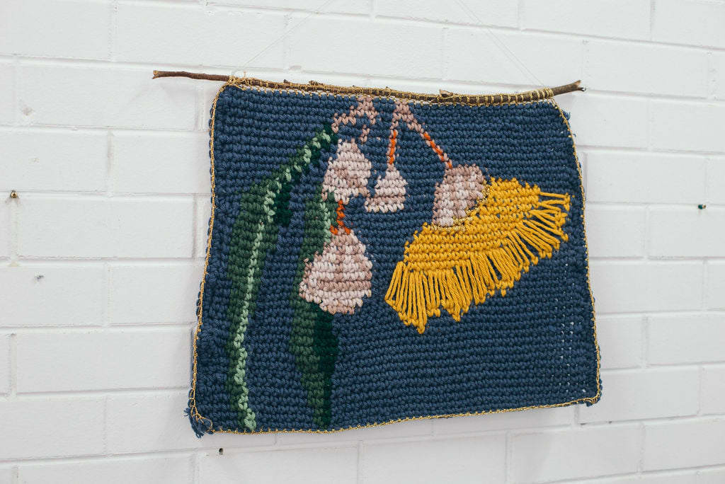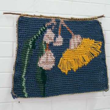 Leah Vlatko is a textile artist and educator living on Amangu country (Geraldton, WA). Her work plays with traditional understandings of 'craft' and incorporates crochet, embroidery, weaving, and community practice. Themes of native flora, considerations of colour, and connection to place are significant in her work.